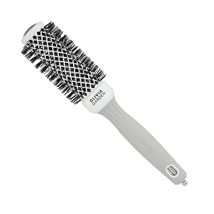 Вам обязательно пригодится термобраш диаметром 35 мм от Olivia Garden, если вы часто укладываете волосы феном, но стремитесь уберечь их от вредного воздействия высокой температуры. Брашинг Ceramic+Ion Thermal Brush d 35 сочетает в себе деликатное отношение к локонам и первоклассную эффективность. Результат достигается за счет высокой скорости укладки, которую обеспечивает хорошая теплопроводность материалов изделия и большие отверстия в рабочей поверхности. Благодаря этому легко достигается оптимальная температура нагрева и облегчается доступ для воздуха.