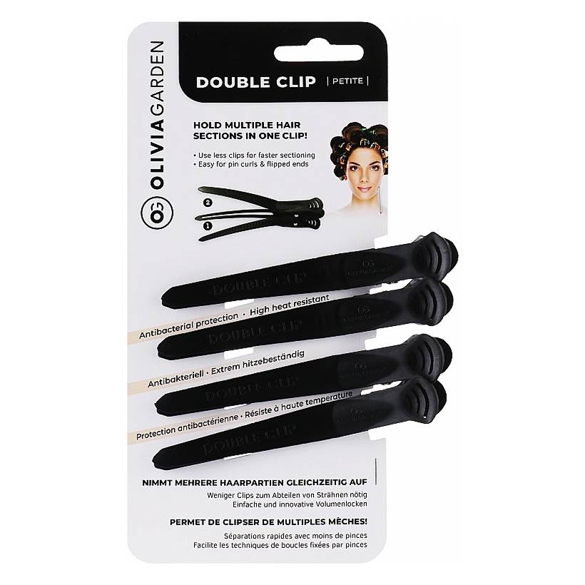 Двойной зажим Petite, 4 штуки для облегчения разделения благодаря меньшему количеству зажимов. Технику двойного зажима проще подкручивать локоны. Антибактериальная защита и термостойкость.